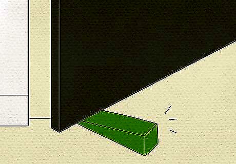 Use a doorstop to hold the door closed. Block family members from opening the door by shoving a doorstop under your door when you're in your bedroom. If you don't have a doorstop, you can easily improvise one. Use anything that will fit tightly in the space between the bottom of your door and the floor. The more things you wedge tightly under the door, the stronger the barricade is, so if you're concerned it won't hold, use multiple items. Grab a pair of old sneakers and shove the toe end of both of them under your door. Space them out a little for a stronger hold. Shove a big, fluffy towel under your door. Really cram it under there so that it will hold, or use multiple towels.