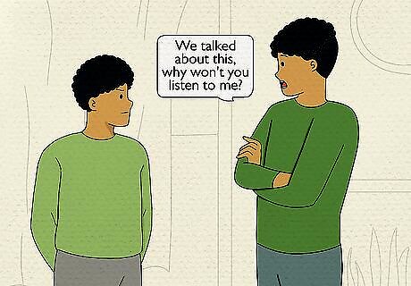 Post a warning sign on your bedroom door. “Please knock before entering” and “Please don’t enter without my permission” would both work great. This is one physical way of setting a boundary, and Rosenberg adds how difficult it can be to do that when it comes to family: “the closer we are to someone, the harder it is to maintain strong boundaries.” However, a sign is a good and simple way to reinforce those boundaries with relatives. If it’s a younger sibling you’re having trouble with, be sure to post the sign at eye level for them. If the sibling is too young to read, draw a picture of a person knocking on a door. You could also hang a dry-erase marker board on your door so that you can change the message sometimes and even address specific family members in the message.