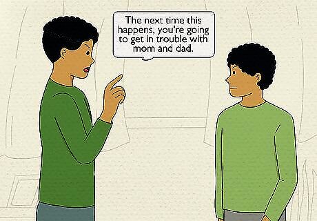 Involve your parents when you're dealing with intrusive siblings. Go to your parents privately to ask for their assistance. Explain in a calm way that you're really upset about this, and that you deserve privacy. Ask them to intervene on your behalf. According to Rosenberg, “When setting boundaries, there is no need to justify, give excuses, or over-explain your feelings. Be firm, gracious, and direct. When faced with resistance, repeat your statement or request.” Make it clear to your sibling that when they barge into your room that you are going to go tell your parents immediately. You could give them a warning and say, "The next time this happens, you're going to get in trouble with mom and dad." As soon as they come in, say, "I'm going to tell mom and dad about this right now." Get up immediately and go get one or both of your parents. Confront your sibling in front of your parents and ask them to back you up. Once you've got your parents there, say something along the lines of, "This can't happen anymore. I deserve personal space, and I want us to resolve this issue right now."