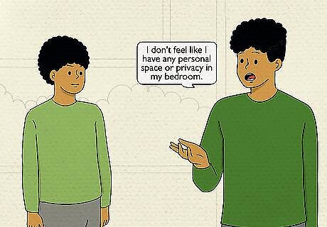 Explain your feelings calmly and respectfully. This is the best way to talk to your family about privacy. Ask them nicely to respect your space and privacy, just as you respect theirs. Express your feelings without pleading, whining, getting upset, or acting victimized. Be firm, to the point, and respectful throughout the entire conversation. Rosenberg advises that you “try the sandwich approach.” She explains that “you start with a positive, ask for what you want or need, and end with a positive.” You can say things like, "I don't feel like I have any personal space or privacy in my bedroom. Can we talk about that? It's upsetting me." Or you could try to put a knocking policy into place. Start the conversation with something like, "I want to start a new rule in the house about knocking before entering. Can we have a family meeting about that?" You could also say, "I respect your privacy and knock on your door. I want you to do the same thing for me." Clinical psychologist Asa Don Brown, PhD, DNCCM, FAAETS, defines what boundaries are: “Boundaries are specific guidelines, standards, desires, rules, or limits that an individual establishes to protect themselves and others. Boundaries are not a denial of your love and affection for someone; rather, you are asking that others respect you as an individual.” Meet the wikiHow Experts Amber Rosenberg, PCC, is a Professional Life Coach with over 20 years of coaching experience and is the owner of Pacific Life Coach. Asa Don Brown, PhD, DNCCM, FAAETS is a Clinical Psychologist with over 30 years of experience specializing in working with families, children, and couples. Tami Claytor is an Etiquette Coach with over 20 years of experience teaching etiquette classes.