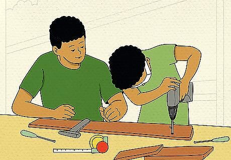 Work on a project together in a different room. Sometimes, siblings just want a little attention from you. Come up with a project that you can work on together outside of your bedroom. If you're dealing with a very small sibling, come up with a fun art project you can work on together. If it's someone a little older, ask for their help on something, like going shopping with you to get a parent a birthday gift, or even making something creative together as the gift. Giving a family member a little attention outside of your bedroom will hopefully make them less inclined to barge into your room constantly for attention.