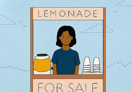 Have a lemonade stand. Lemonade stands are popular in the summer, and can make you a good amount of money. Get some friends together and make lemonade to sell in your neighborhood. There are a lot of factors that make a lemonade stand successful, the first being location. You want to put your lemonade stand somewhere where there isn’t a lot of competition and that’s in a busy, visible part of the neighborhood, like a street corner. Make your stand look as inviting as possible. If you are feeling really creative, build an old-fashioned stand and decorate it with ribbons and a banner with your “company’s” name on it. Keep track of what you spent on ingredients, and charge enough so that you can make a profit. Just don’t charge too much. Make a menu with your offerings, and consider offering more than just lemonade. Maybe you have cookies or brownies, or other flavors of lemonade. Create a website to advertise your business. Just make sure to get your parents permission first. Try using Wix.com to create it. Assign different tasks to everyone. Make signs and have some kids go around the neighborhood posting them up or standing at the ends of the block advertising. Have someone making your goods so you don’t run out.