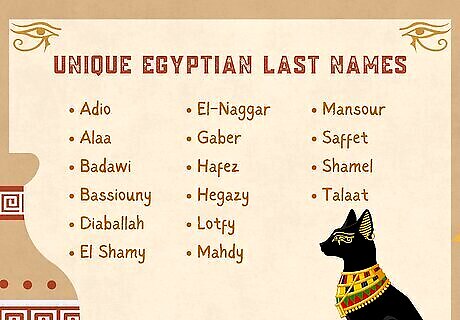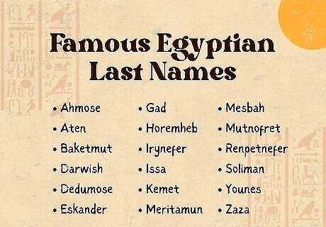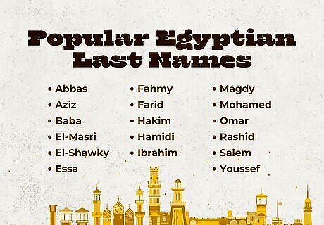 Egyptian surnames began to appear after the 7th-century Islamic conquest. With the arrival of Arabic culture and customs in Egypt around this time, last names became more commonly used. Many Egyptians adopted Arabic surnames, based on geographical location or ancestral lineage. For instance, El-Masri means “the Egyptian,” while El-Badawi means “from the desert,” for the Bedouin people. Other examples include El-Hakim, meaning "the doctor,” or Najar, meaning "carpenter.” Additionally, Coptic, Jewish, Christian, and Colonial European cultures also influenced some Egyptian last names. Modern Egyptian last names often use the prefixes “El-” or “Al-” to indicate “the,” as in “El-Shawky,” meaning “the thorny one.” Many Egyptian surnames are based on Islamic words and carry a religious meaning, like “Khalil,” meaning “friend of God.”