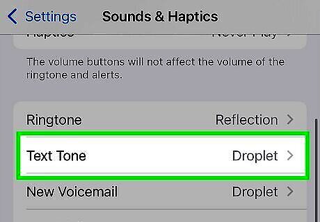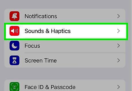 Tap Sounds & Haptics. This menu option is in the second group of settings. This option is called Sounds on older iPhones.