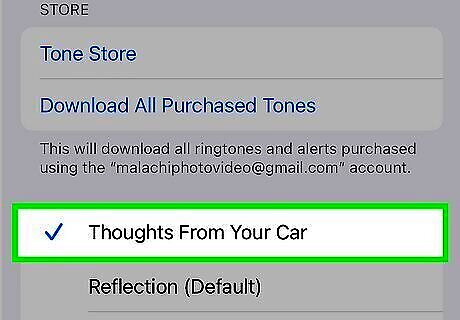 Scroll down and select a sound. You'll actually have two sets of tone options—Ringtones and Alert Tones. Ringtones are longer and more appropriate for incoming calls, while alert tones are shorter and best for notifications. Tap through the different sounds until you find the one you like. Or, to disable alert tones for this particular type of alert, tap None at the top. If you're looking for a vintage style of alert tone, tap Classic at the bottom of the Alert Tones section for more old school options. You can also download new alert tones by tapping the Tone Store link at the top of the page. Tones are generally cheap (in the $1 to $2 range) and you can even pay for them with iTunes gift cards.