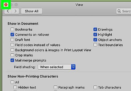 Close the window. Click the red button to close the window and return to your Word document. Alternatively, you can enable the Developer tab by going to Word > Preferences > Ribbon & Toolbar, then checking the box next to Developer in the list of options under the Customize the Ribbon header. Make sure Main Tabs is selected in the dropdown menu at the top of the list. Click Save.