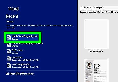 Open your document in Word. Click the Word logo in your Start menu, then you can either open a new document, create a new document from a template, or open an old document.