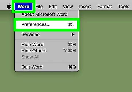 Click the Preferences tab under Word at the top of your screen. You'll see this next to the Apple icon Mac Apple. A new window will pop up.