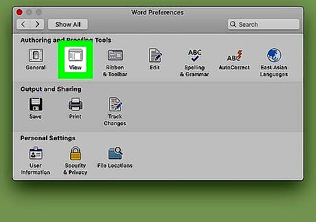 Click View. It's under the “Authoring and Proofing Tools” header next to General and Ribbon & Toolbar.