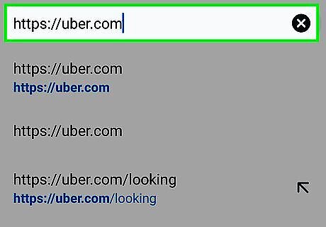 Go to https://www.uber.com/ in a mobile browser on your phone. You can use any web browser on your Android device such as Chrome or Firefox.
