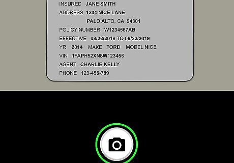 Take a picture of your insurance card. Make sure your proof of insurance is up-to-date and placed on a well-lit surface with all the relevant information legible.