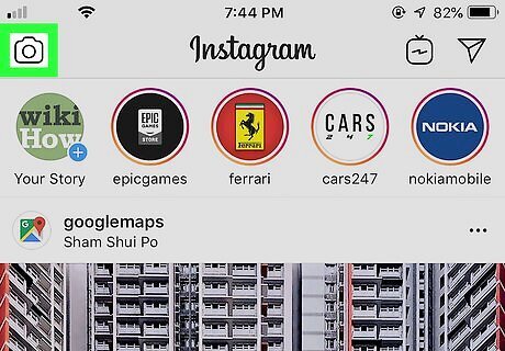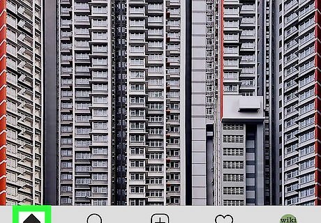 Tap the home icon. This icon looks like the silhouette of a house and appears in the lower left corner. Tapping it ensures that you're on the Instagram Home page.