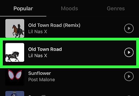 Tap the song you want to add to your story. Instagram sorts available music by popularity, mood and genre. You can also search for a specific song by tapping on the Search Music field and typing an artist or song name.
