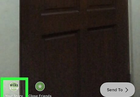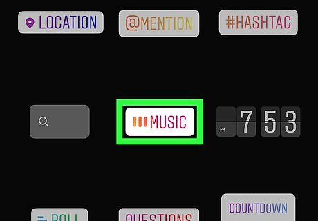 Tap Your Story. This publishes your new Instagram story to your followers. You can also choose your background music before you shoot your video by swiping right on the text menu that runs across the bottom of the camera screen, tapping Music, tapping your desired song, and swiping left and right to choose which part of the song you want to match up with the video you're about to record. When you add music to your video in this manner, the large white button displays music notes in its middle.