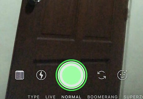 Long-press the large white button. The button is in the bottom center of the screen. This begins recording video for your Instagram story.