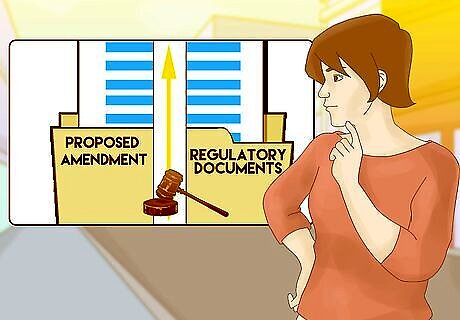 Make sure your proposed amendment is consistent with other regulatory documents. In addition to ensuring your proposed bylaw conforms with your state's nonprofit corporation statute, you should also check it is consistent with the non-profit's articles of incorporation and, if applicable, other relevant statutes. If your organization is governed or licensed by a state agency, such as the Department of Education or Department of Banking, review state laws in those areas for additional mandatory bylaw provisions. For example, if you wish to amend the bylaws of a Home Owner's Association, you must refer to both your state's nonprofit statute and its Home Owner's Association Act. If the Home Owner's Association Act specifies that board meetings must be open to members, your bylaws must allow for members to attend board meetings, even if your state nonprofit statute does not require it.