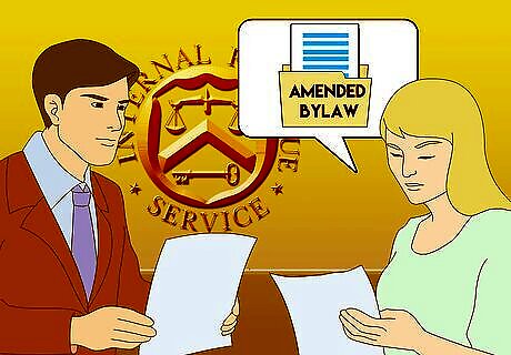 Inform the IRS. If your nonprofit is recognized as tax-exempt by the IRS, you are obligated to notify the IRS of any "structural or operational" changes to your bylaws. An example of a structural or operational change would be the creation of a new program. If this is your case, either submit the amended bylaws or a letter describing the changes to the IRS Exempt Organizations Determinations Office or report the changes by filing Form 990 or Form 990-EZ.