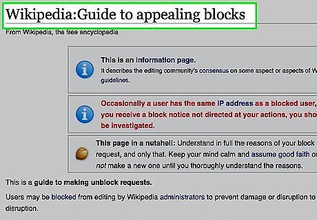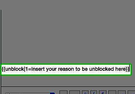 Put the template {{unblock|reason=Insert your reason to be unblocked here}} under the message indicating your block (if there is one; otherwise, put it at the bottom of the page). Replace the "Insert your reason to be unblocked here" with the reason you want to be unblocked. A good unblock reason will: Show that you understand why you were blocked and your understanding of the policy you were against. Address the reason for your block in your reasoning. Admit that you did something wrong and that it won't happen again. Show that the block is not necessary to stop you from causing further problems on the site. Give links as evidence.