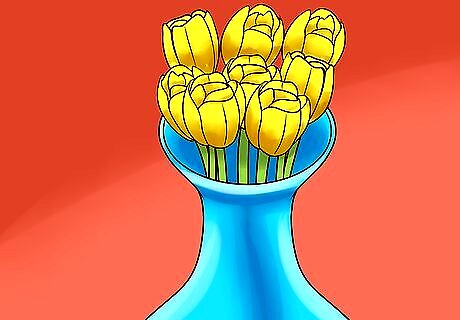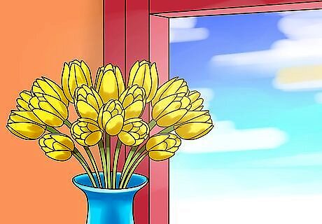 Place the tulips away from sources of significant heat. This includes direct sunlight, radiators, stoves, lamps, and television sets. Heat can cause the tulips to run through their lifespan at a more rapid pace. As a result, your arrangement will not last as long as it otherwise could.