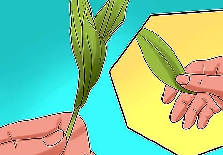 Remove most of the leaves. At minimum, you should remove the bottom leaf of each stem. You can remove more leaves, as desired, to change the appearance of the arrangement. When creating medium to large arrangements, you'll usually want to remove all but the top leaf from each stem. The single leaf provides just enough volume and greenery to make the arrangement look full, but too many leaves can distract from the appearance of the tulip blossoms. Any leaves you leave behind should be inspected for dirt. Brush or wash away any hidden debris trapped along the inside of the leaves. To remove the leaves, simply pull each leaf back and gently peel it off the stem.