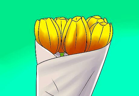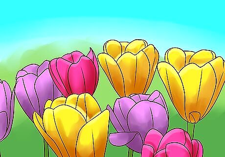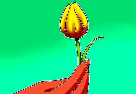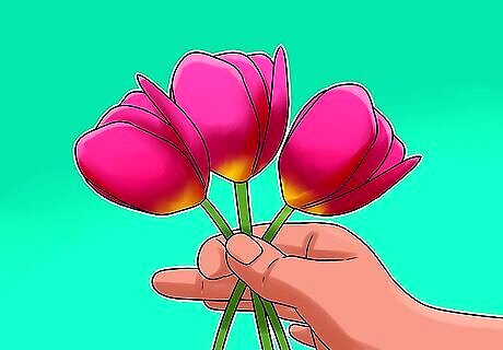 Take tulips that are still closed. Your tulip arrangement will last longer if you start with tulips that still have closed buds with only a hint of color showing—just enough to let you see what color you're actually purchasing. Tulips that have already begun opening can still create a nice display for a day or two, but since they're further along in their lifecycle, these tulips will not last as long in an arrangement.