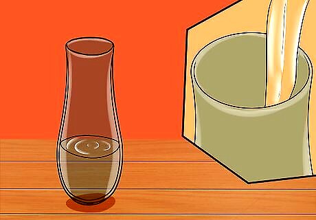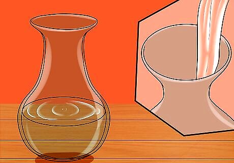 Clean it thoroughly. Use hot, soapy water to thoroughly clean out any dirt and debris from your chosen container. Rinse it with clean, running water when done to remove any soap residue. Bacteria in the vase or water will cause the tulips to die significantly faster than they would in a clean vase.