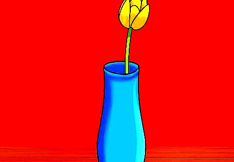 Trim the stems down further, if necessary. The exact stem height you'll need for your single tulip display will depend on the type of container used. When using a tall, narrow container meant to enclose the entire tulip, a longer stem will look nicer than a shorter step. The idea is to keep the tulip under the rim of the container without having too much empty glass above it. For standard, narrow bud vases, keep two-thirds to three-quarters of the stem constrained by the vase. If using a wide, short container, the depth of the container should be no less than half the height of the tulip stem.