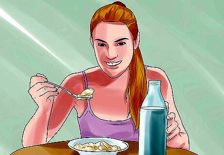 Eat a decent breakfast. You basically have two options here: 1) Eat a decent, protein-rich breakfast followed by a large Thanksgiving meal, or 2) Skip breakfast, start starving, and eat a Thanksgiving meal that's so large you resort to rolling yourself to the couch and asking mom to bring you more pie because you can't move. Which one sounds like the more weight-friendly option? Hopefully you're thinking #1. It's not exactly rocket science -- going into a meal not starving makes us eat a lot less when we hit the dinner table. Sure, you're wasting calories on food you eat every day, but you're preventing yourself from gorging on a 3,500-calorie meal. And no, it won't result in a higher calorie intake. You will eat less if you eat breakfast.