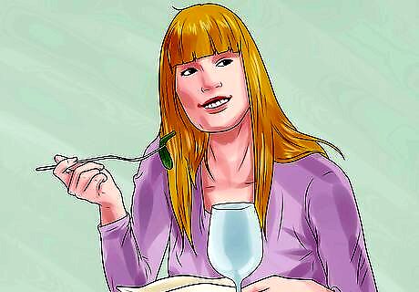 Slow down. Enjoy and be thankful for each bite, truly savoring the wonderful tastes. The slower you eat, the less you'll intake before your stomach reaches your brain and says, "Woah! Stop. I'm full!" It usually takes about 20 minutes for your stomach to start sending CCK signals to your brain -- the "I'm full" hormone. So instead of gorging yourself before you realize you don't want any more, take it easy. You have the whole afternoon, after all! A simple way to do this is to put your fork down between bites. Chewing your food a little more than you normally would (no need for counting and ruining Thanksgiving with math) and losing the fork are two concrete ways to curb your chowing speed.