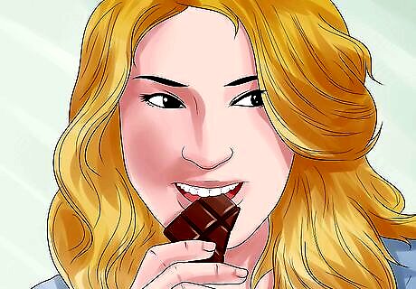 Put treats out of sight. When our kitchens, dining rooms, living rooms, and, let's be honest, bedrooms are littered with cakes, cookies, and sweet, sweet munchies, it'd take a robot not to succumb to the deliciousness. When peppermint brownies, gingerbread, and toffee is within arm's reach, no one is going to blame you for going over to the dark side. Since it'd be ridiculous to suggest you throw them out, the best thing you can do is to put them in a non-transparent container and in the cupboard. Out of sight, out of mind. It actually works! When we're staring at a table full of treats, all hope goes out the window. But when they're there but not seen, we're capable of forgetting that they're there (most of the time) and thus can avoid the absent-minded munchie grab. Do yourself a favor and pack 'em away before you don't realize you're on your fifth mint chocolate cupcake.