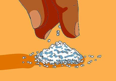 Form a small mound of salt on the table. You need about 1 teaspoon, or 5.69 g (0.201 oz), although using more doesn’t hurt. Regular table salt works well, but if you have something coarser, such as sea salt, use it for extra stability. Pour the salt right on top of the table. If you pour the salt gradually without moving at all, it forms a small hill for you to balance the egg on. If the salt scatters, use your fingers to sweep it into a pile. Push it together so the pile is at least as wide as the tip of the egg.