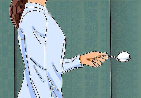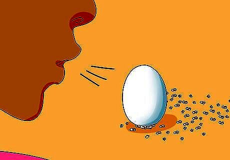 Focus ahead of you instead of on the egg. When you’re running a race, you look at the finish line instead of your feet. It is no different with a spoon in your hand, whether you’re running a race or not. Another problem is the temptation to glance at people around you and other distractions. Focusing is difficult, but look straight ahead to help improve your balance. Balancing an egg on its side isn’t as hard as it may seem. Confidence is key, and avoiding distractions is the best way to increase your success in keeping an egg balanced.