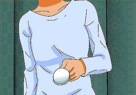 Loosen your muscles to maintain better control over the egg. Balancing an egg is both exciting and frustrating, especially when someone challenges you to a race. Increase your balancing skills by relaxing as much as possible before picking up the spoon. Take a deep breath, shake out your arms, and stretch as needed before picking up the spoon. After you pick up the spoon, let your arms and hands hang as low as necessary to reduce the tension in them. Stay loose as much as possible when you move with the spoon. Think about how much more smoothly you move when your body isn't tense. Jerking movements are a sure way to end up with an egg on the floor. Your hands, arms, shoulders, neck, and head are the areas to pay the most attention to. Relaxing and stretching your hands and arms usually helps release tension in the other areas. You can lean forward slightly if it helps you balance, but avoid raising your shoulders or lifting the spoon up toward your face.