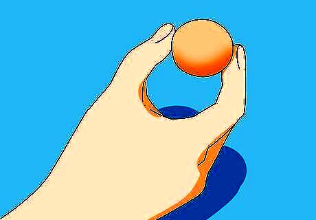 Hold the egg between your thumb and index fingers. Cup the egg by forming a U-shape with your fingers. Start by pinching the top half of the egg with your right hand, then grip the base of the egg with your left hand. Your thumbs and index fingers rest on opposite sides of the egg. Keep the egg positioned with the rounded end against the table as you move your other fingers out of the way. Most people try to balance eggs with one hand at first. Using both hands is actually easier since it enables you to keep both ends of the egg steady. You can switch your hands around if you wish. Try putting your left hand on top and your right hand below it. You may find this more comfortable if you’re left-handed.