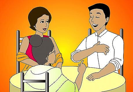 Have fun. The point of a wedding party is to have fun and celebrate with the newlyweds. So, eat, dance, partake in group activities and enjoy talking to familiar and unfamiliar people.