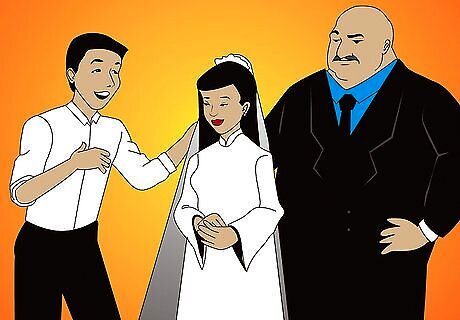 Give thanks. As a guest at a wedding, you should make a point to introduce yourself to the bride and grooms’ families and express your thanks. If you can site a specific element of the wedding that stands out in your mind as memorable, include that in your conversation. Try: “Hi Mr. and Mrs. Thompson. I’m Harry and I work with your daughter. She’s a beautiful bride. Thank you for a spectacular evening. The photo booth was a fun touch. Congratulations to you both.” If you give a toast, keep it short and sweet. Don't include in your toast any stories or personal details that the couple asks you not to share. If you are not good at improvisation, plan your speech in advance. You can even show the draft to the couple in order to avoid causing embarrassment.