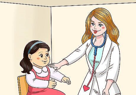 Turn Barbie into a doctor to have her help patients. Pretend that Barbie is a doctor or nurse and create an office for her to see sick patients. Use other dolls or toys to be the sick patients, and have Barbie check their throat, ears, nose, temperature, and breathing to see if she can help them get better. Pretend Barbie is a surgeon and is operating on another doll to save its life, or have Barbie fix up another doll’s broken arm or ankle.