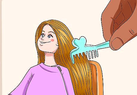 Send Barbie to the hair salon to fix up her hair. To smooth out any tangles in Barbie’s hair, dip her hair in a mixture of fabric softener and water and then use a brush to brush out the tangles. Curl Barbie’s hair using pipe cleaners and hot water, or dye her hair with food coloring mixed with water. To curl Barbie’s hair, take small sections of her hair and roll each section up on a small piece of pipe cleaner, just as you would real hair curlers. Dip her hair in hot water and let it dry. Mix a drop or 2 of food coloring in a bowl of water before dipping Barbie’s hair into the colored water. This works best if Barbie has blonde hair.