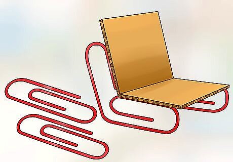 Design chairs using cardboard and paper clips. Use scissors to cut cardboard into strips that are at least 3 in (7.6 cm) wide. By bending these strips of cardboard, you can create simple chairs or chaise lounges. If you want the chair to stand up off the ground, bend paper clips to form chair ends and use glue or tape to attach them to the bottom of the chairs. Fold a 6 in (15 cm) long piece of cardboard in half to create a simple chair. Fold a 9 in (23 cm) long piece of cardboard into thirds to form a chaise lounge.
