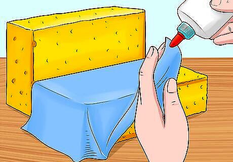 Cover sponges in fabric to create a comfy couch. Find pieces of fabric for sewing or crafts around the house and cut them into squares large enough to fit over the sponge, leaving 1 in (2.5 cm) of extra fabric on each side. You can either sew the fabric to create a cover for the sponge, or you can glue the fabric onto the sponge. Do this with at least 2 sponges and then place one flat on the ground with the other up against a wall as a backrest. For a super comfy couch, make the seat of the couch out of 2 sponges stacked on top of one another. To create a long sectional, use 4-6 sponges to form the couch.