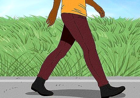 Walk more throughout the day. Finding time to exercise can be difficult, especially with busy schedules or long commutes. Start adding in physical activity by increasing how many steps or how much you walk during the day. Increasing physical activity is a great change to make to help improve your overall health. Exercise has been shown to help improve mood, increase energy, and decrease your risk of heart disease and high blood pressure. Even without planned exercise each day, adding extra steps can be beneficial to your health. Try: taking the stairs instead of the elevator, parking father away, delivering messages in person instead of email at work, walking while you talk on the phone, or take a walk on your lunch break. You burn more calories walking at a faster pace than you do at a slower pace. You can also consider purchasing a pedometer to help see how many steps you take and monitor your progress of increasing your total steps. Try the "one mile rule." This means that you can walk to the store, school, work or other locations if they are less than one mile away (and it's a safe walk). Skip taking the bus or driving!