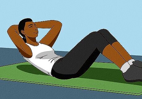 Add in some resistance training. Not all strength training exercises require you to spend time at the gym. There are plenty of easy to do exercises at home that require little to no equipment. It's recommended to include 20 minutes of strength training two days a week. Including strength training helps build lean muscle mass which can increase your metabolism and how many calories your body burns at rest. Easy, no equipment required exercises include: lunges, push-ups, sit-ups, squats, or wall sits.