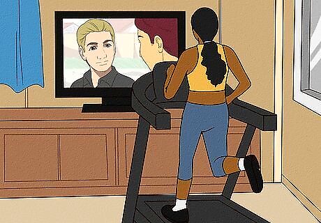 Move while you watch TV. If you aren't ready for the gym or more intense exercise, try moving while you watch your favorite TV programs. Get up during the commercial breaks and fit in a few minutes of activity. Try running or walking in place, or some strength training exercises. Since commercial breaks are about two minutes, you can burn about 270 calories during two hours of TV time. Sit on an exercise ball in front of your desk or TV.