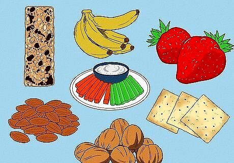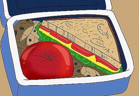 Pack your lunch. Studies show that packing your lunch can help cut down on your overall calorie intake (and food costs). Brown-bagging your lunch will give you more control over what foods you eat and how they're prepared. If you typically eat lunch out everyday, start by packing your lunch just one to two days a week. Also pack an afternoon snack if you typically stop by the vending machine to grab an afternoon pick-me-up.