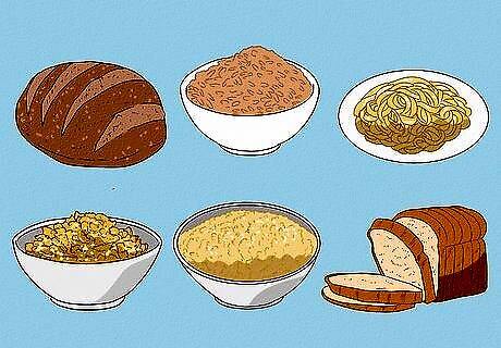 Choose whole grains when you can. Whole grains are minimally processed grains that are higher in fiber, protein, and other nutrients compared to refined grains (white bread or plain pasta). They may have a more nutty flavor and chewy texture, which may not be enjoyable by all people. If you typically eat refined grains, start by making about half of your grain choices whole grains. As you get more comfortable with this goal, you can work up to making more of your grain choices whole grains. Whole grain foods to try include: 100% whole wheat pasta, oatmeal, quinoa, brown rice or 100% whole wheat bread. Try a variety of whole grains and a variety of brands of whole grains. For example, try 100% whole wheat pasta. If you don't like it, try another brand of 100% whole wheat pasta as each brand has a slightly different flavor.
