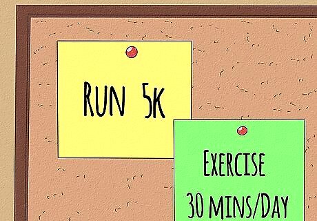Set goals for yourself. Small goals are often the most appealing as they are the easiest to reach. If your goals are too high and you are unable to reach them in a timely manner, you may become discouraged. Set small goals that ultimately lead up to your larger goal. It will help provide you with the motivation to make and keep lifestyle changes. When setting your goals make sure they are realistic, timely, and specific. These qualities make goals that are easier to meet in the long-term. For example, instead of a goal of "I want to boost my endurance," make your goal "I want to be able to swim five laps in my pool without needing to stop." Also consider whether you need smaller goals to meet a larger, more long-term goal. For example, if you want to run five miles, you might make a goal to run a 5k (which is 3.1 miles) as an intermediary goal.