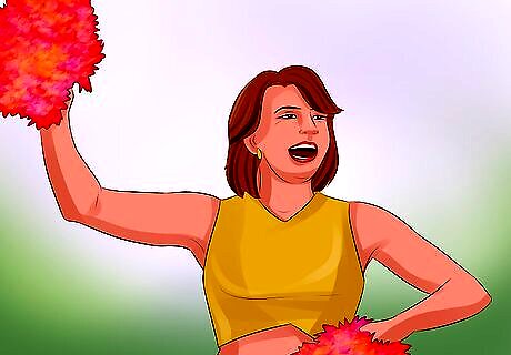 Use your voice in cheerleading. Spread cheer and promote crowd involvement by smiling and using your voice. Pronounce every word clearly through enunciation to initiate words and syllables smoothly. Wear a smile at all times and practice maintaining your poise. Team spirit must be felt the entire duration you’re cheering during games, win or lose.