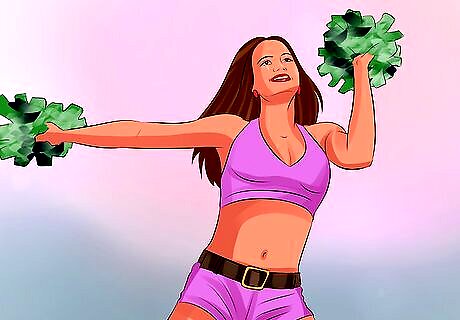 Perform the moves that go along with the cheer. Cheerleading moves should be sharp and precise. Make sure you are executing the movements properly. You are not only representing you, but also your school and sports’ team as well.