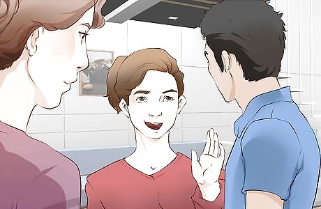 Never take sides. If you’re stuck with a couple who has begun a disagreement, things can get uncomfortable fast. Many times couples will want you to weigh in on their squabble; don’t. You’ll only alienate one or the other of the people you’re with. Be upfront about your neutrality. "Hey, let's not do this now. Try to keep it civil, we're out to have fun!" "I'm not going to be roped into your argument; why don't we try having a good time since we're out together? Fortunately this is a situation where it’s alright to speak a little more plainly, or to voice your awkward position. Hopefully they’ll understand the spot they’re putting you in and back off. "You know it's not nice to put me on the spot like this. You guys can argue, but I'm not going to be a part of it." Be sure to keep up this neutrality after the fact. Even if there’s one or the other you agree with, don’t reveal this later on. It’ll make you come off as dishonest.