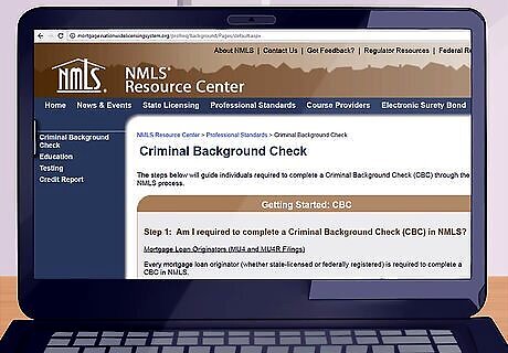 Request a criminal background check. A criminal background check is a necessary requirement to become a mortgage broker in D.C. This will also include presenting your fingerprints to the NMLS for processing by the FBI. Check the results of the criminal background check at the NMLS website at http://mortgage.nationwidelicensingsystem.org/ from your individual account.